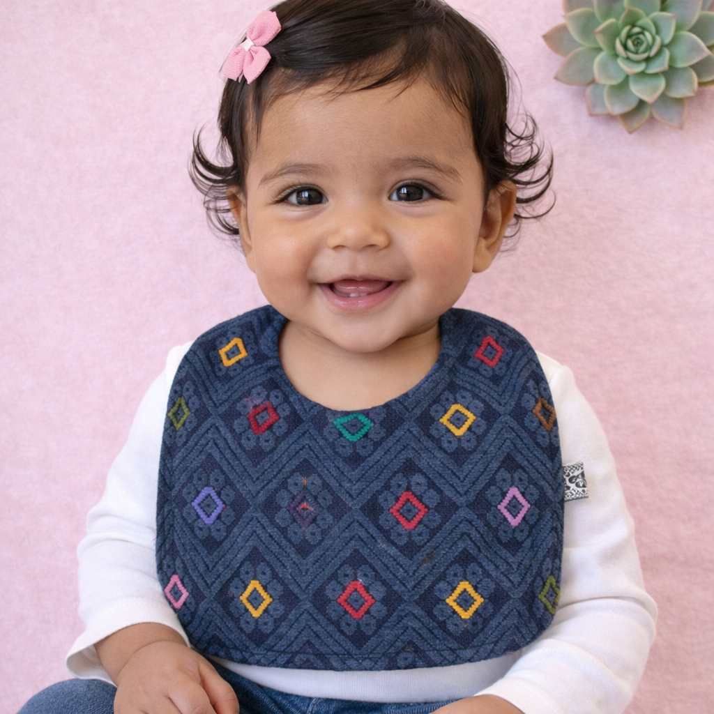 made for the modern mama with love for classic Mexican heritage. These beautiful bibs are made from a manta that was woven on a loom