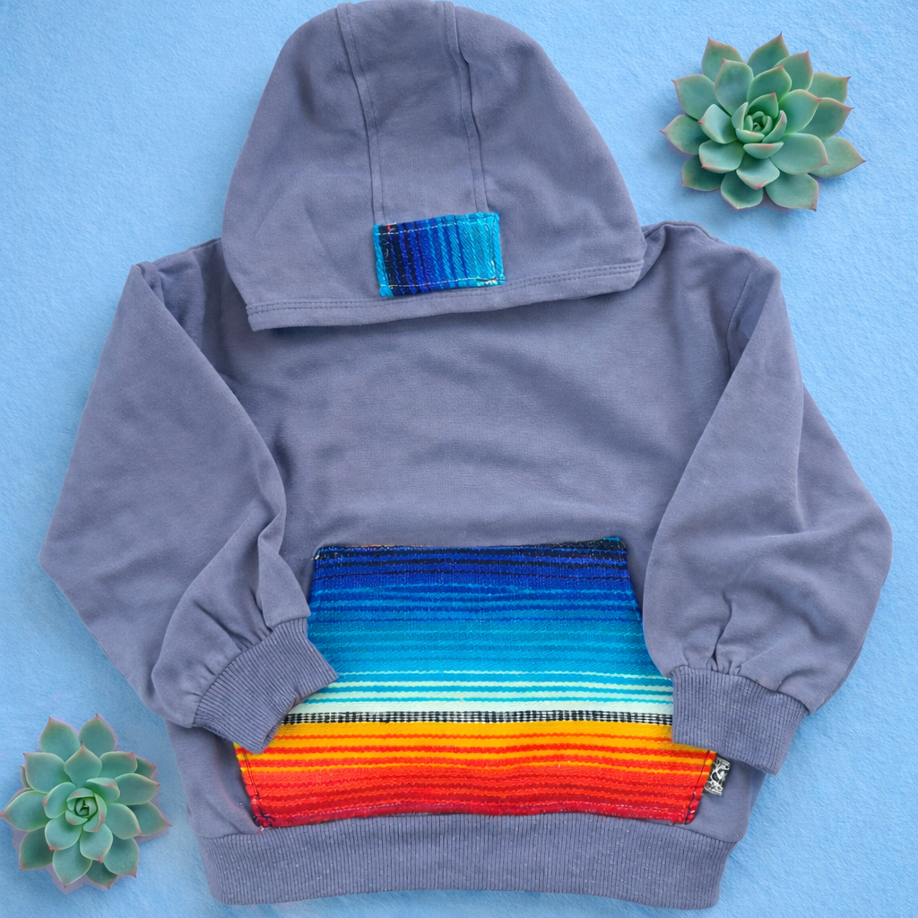 Dusty Blue Sarape Cotton Hoodie 6M- 4T