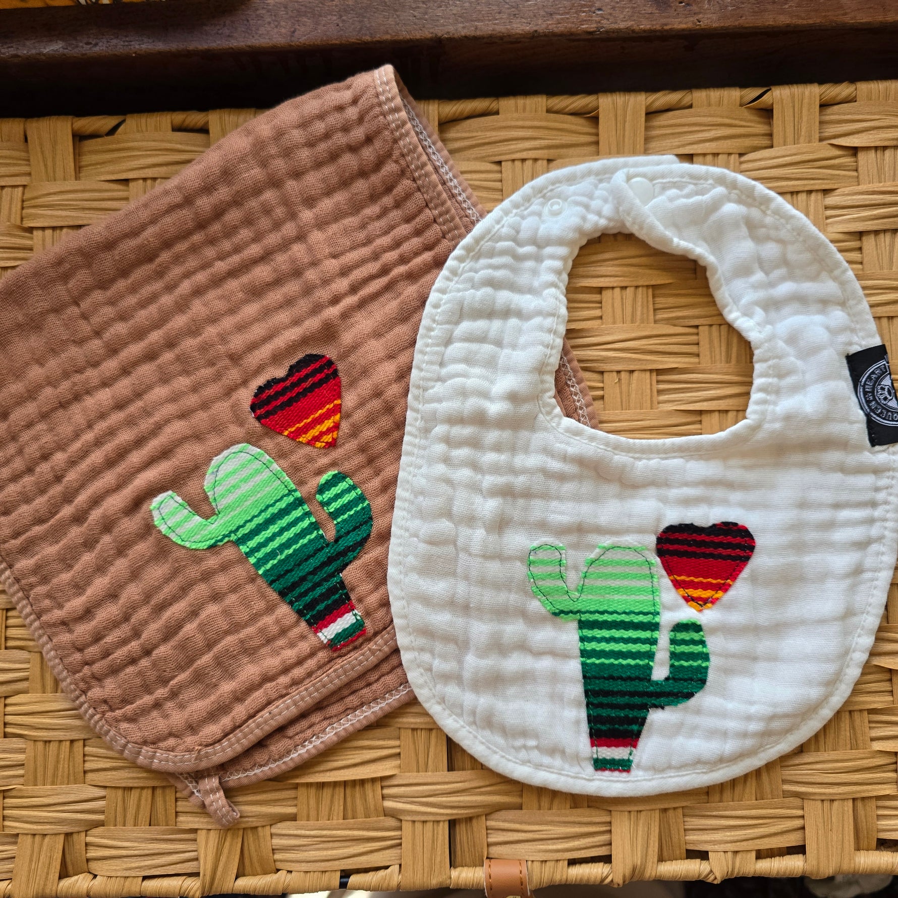 Cotton Cactus Sarape Bib and Burp Rag Set Mexican Cambaya