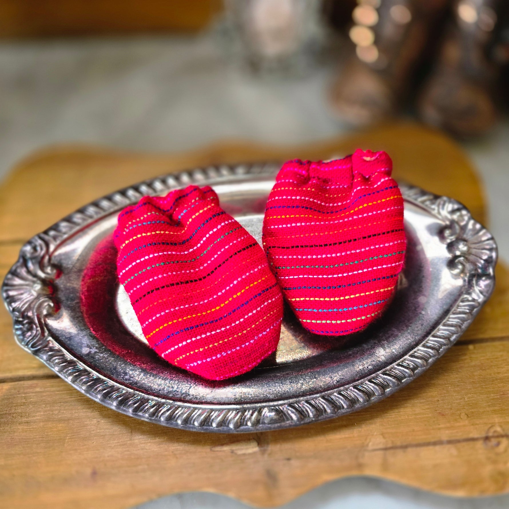 Keep your baby’s hands warm and stylish with these one-of-a-kind handmade baby mittens! Crafted with vibrant and traditional Mexican cambaya fabric, these mittens bring a touch of cultural charm to your little one’s essentials. The soft, flannel lining ensures maximum comfort, keeping delicate skin cozy and protected.