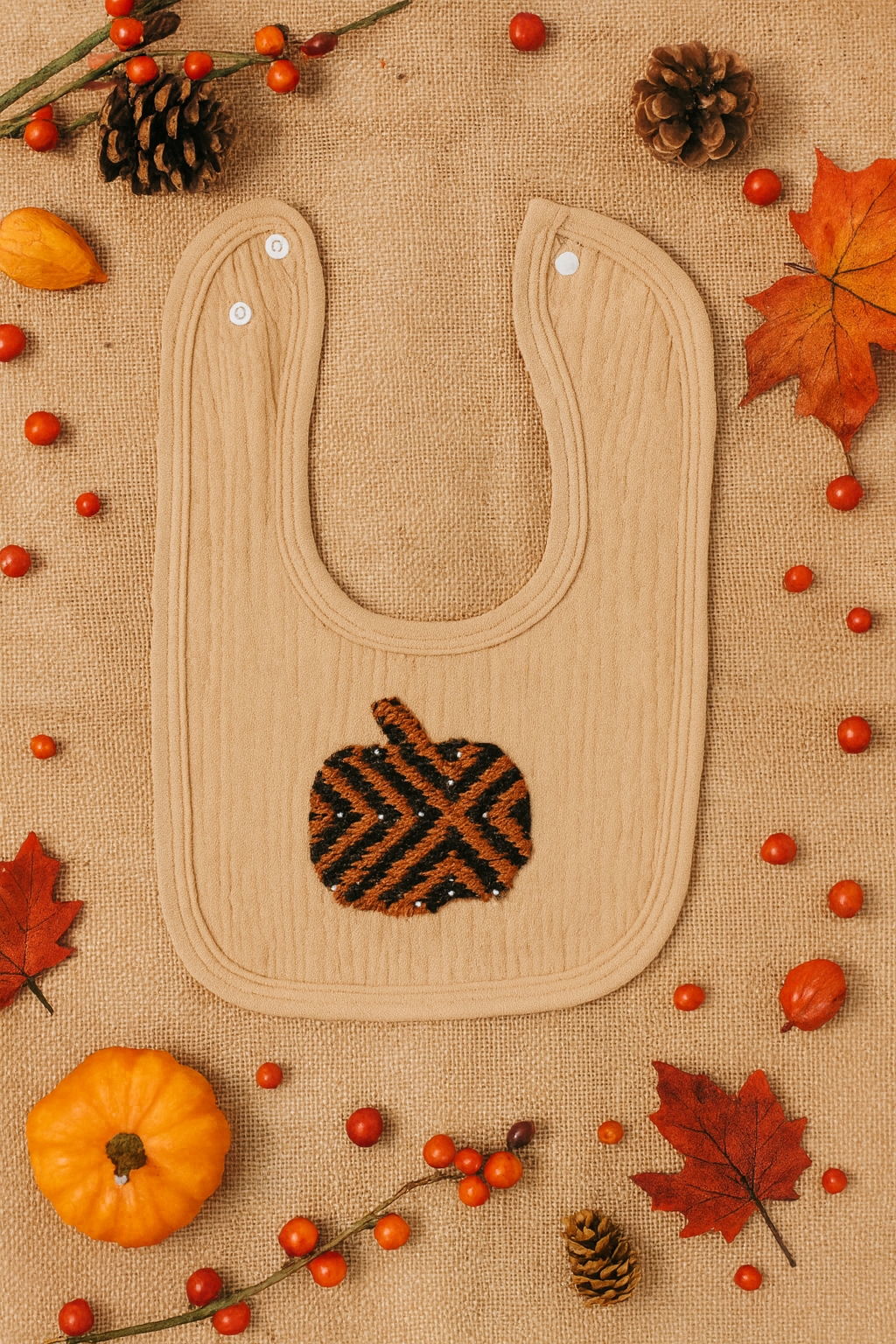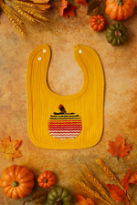 A perfect blend of practicality and heritage—made for the modern mama with love for Mexican heritage. This beautiful bib is made with ultra-soft cotton bib and topped with a Sarape pumpkin embellishment