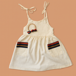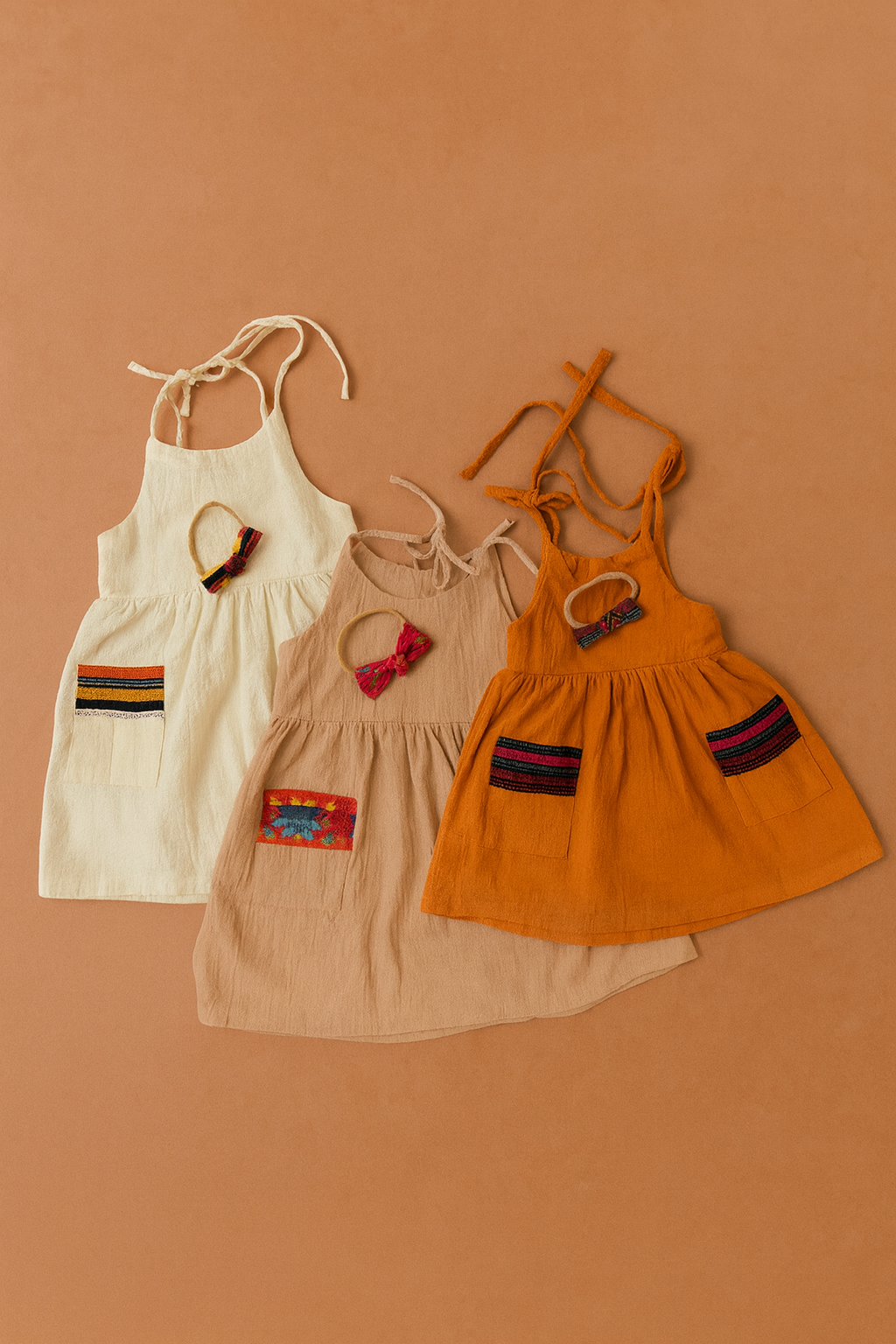 Handmade cotton dresses, beautifully finished with authentic Cambaya textile details on the pockets and paired with a matching bow headband. Each piece is designed to celebrate culture while keeping your child comfortable and stylish.