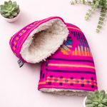 Our Cambaya mittens are handcrafted using vibrant, traditional woven fabric and fully lined with an ultra-soft plush interior for cozy warmth.